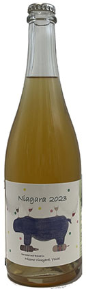 ミソノヴィンヤード ナイアガラ23 ミソノ・ヴィンヤードは北海道・余市でヴィニュロン松村宗雄氏が開墾する6haの葡萄園。 樹齢50年の古木のナイアガラを無化学農薬・無肥料で栽培。 野生酵母・亜硫酸無添加・無補糖で一次発酵後、上白糖を加え瓶内二次発酵、無濾過で出荷しています。 北海道のナイアガラならではの豊かなアロマ、古木ブドウの複雑な酸とフルーツの厚みが印象的。 極めてピュアで自然な口当たり。2023年ヴィンテージのワインでは唯一のペテイアンです